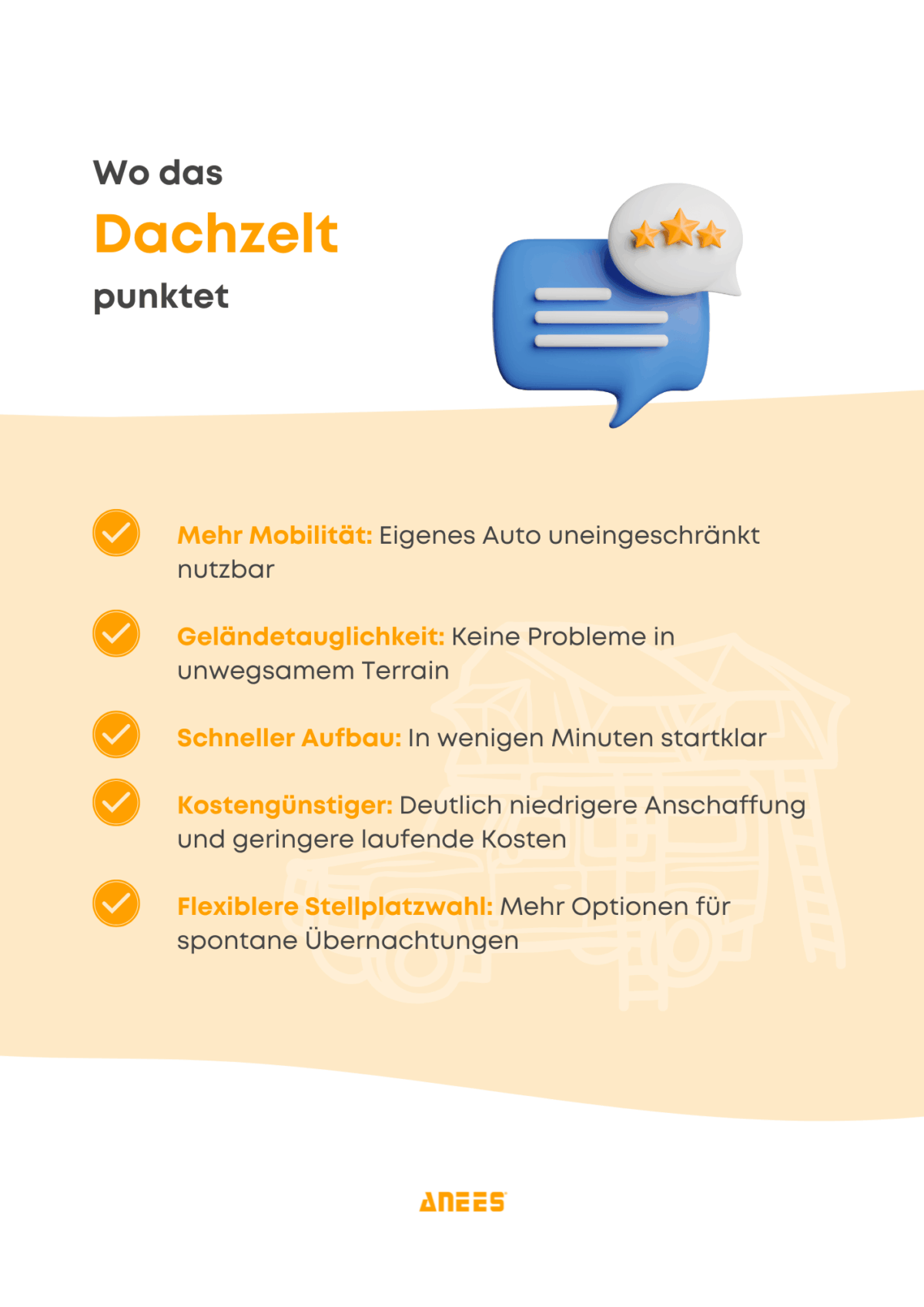 Die wichtigsten Aspekte, die hier für Dachzelte sprechen: