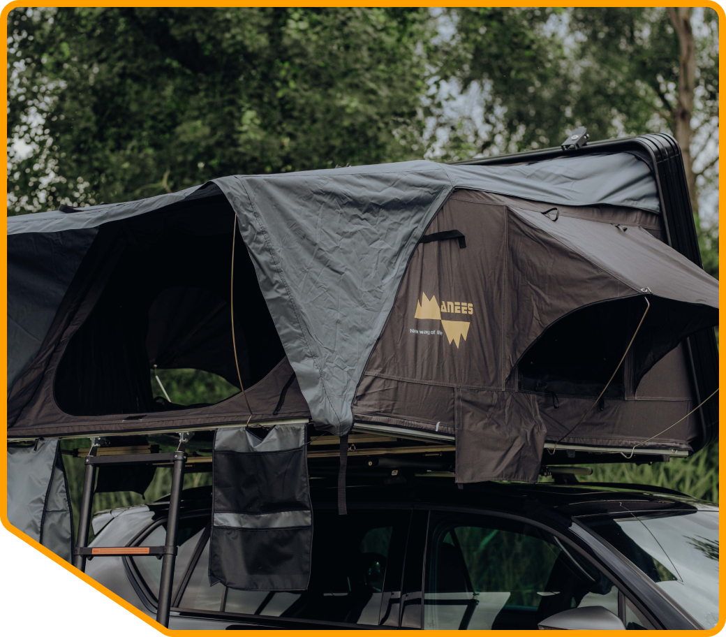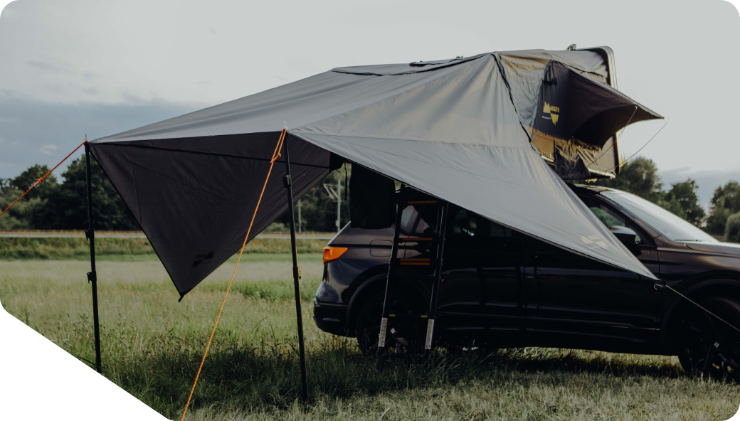 Wer gerne mehr Schutz im Einstiegsbereich möchte, kann das Dachzelt um eine Markise erweitern. Ob Sonne, Wind oder Regen – mit dem passenden Zubehör wird das Triangle Big schnell zur gemütlichen Outdoor-Basis. Besonders praktisch: Unsere Markisen lassen sich an die vorhandenen Schienen oder Dachbox-Systeme anpassen und bleiben damit flexibel kombinierbar.