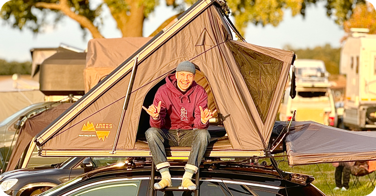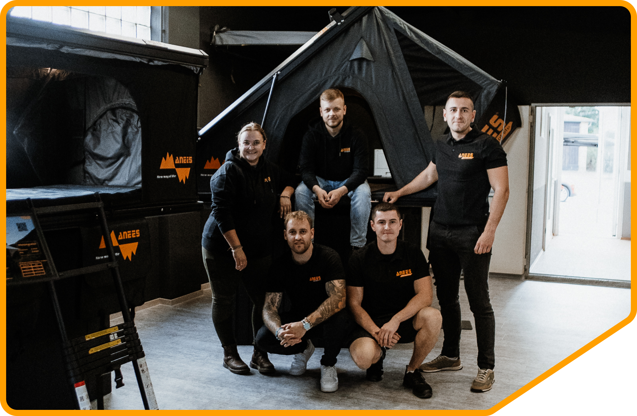 Aus den ersten Erfahrungen mit unseren Mietkunden entwickelten wir eigene Ideen und wagten im Winter den Sprung ins Design. Schon bald konnten wir die ersten selbst entworfenen Dachzeltmodelle bei uns vor Ort präsentieren. Damit legten wir den Grundstein für den Erfolg von ANEES – Qualität, Abenteuerlust und Familienhandwerk vereint. Aus einer einfachen Vermietungsidee wurde ein eigenes Label – und der Startschuss für eine neue Ära unserer Firmengeschichte.